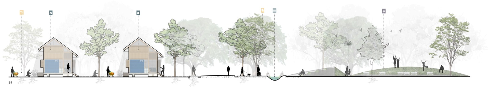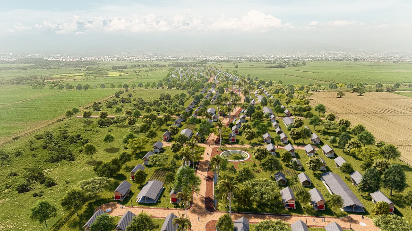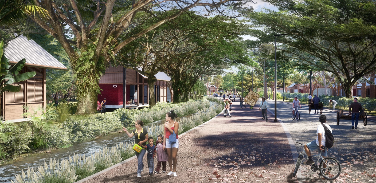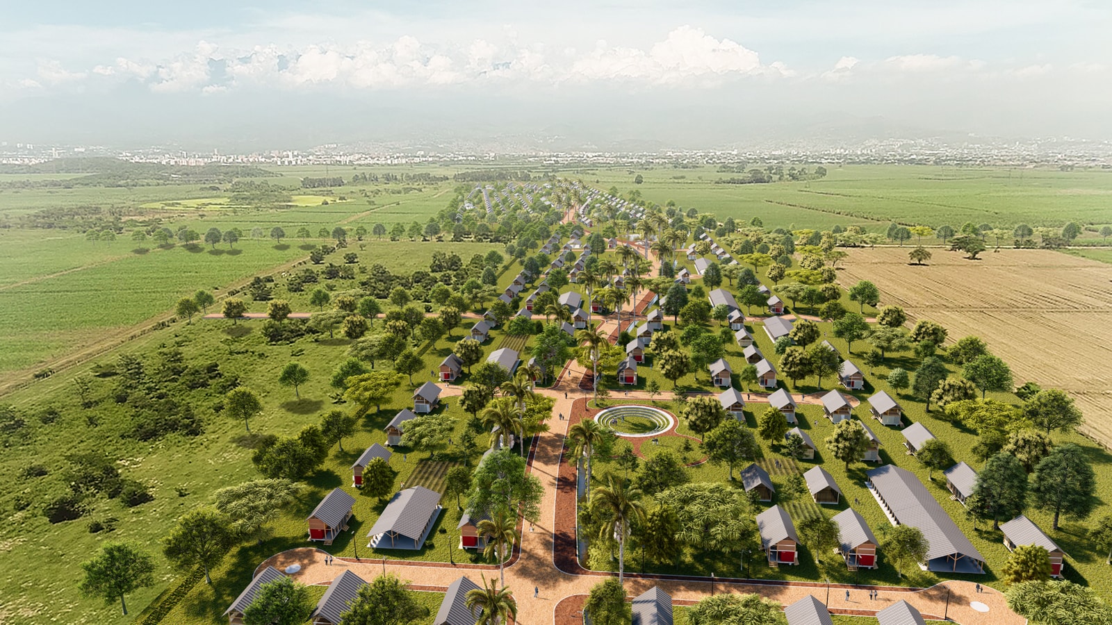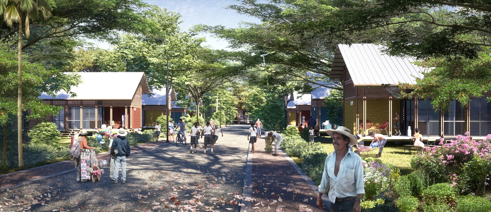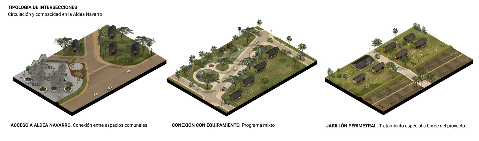 The Navarro Village comprises individual and collective rural properties, structured by the SAMAN PROMENADE and local and inter-village integration roads defining the Neighborhoods.