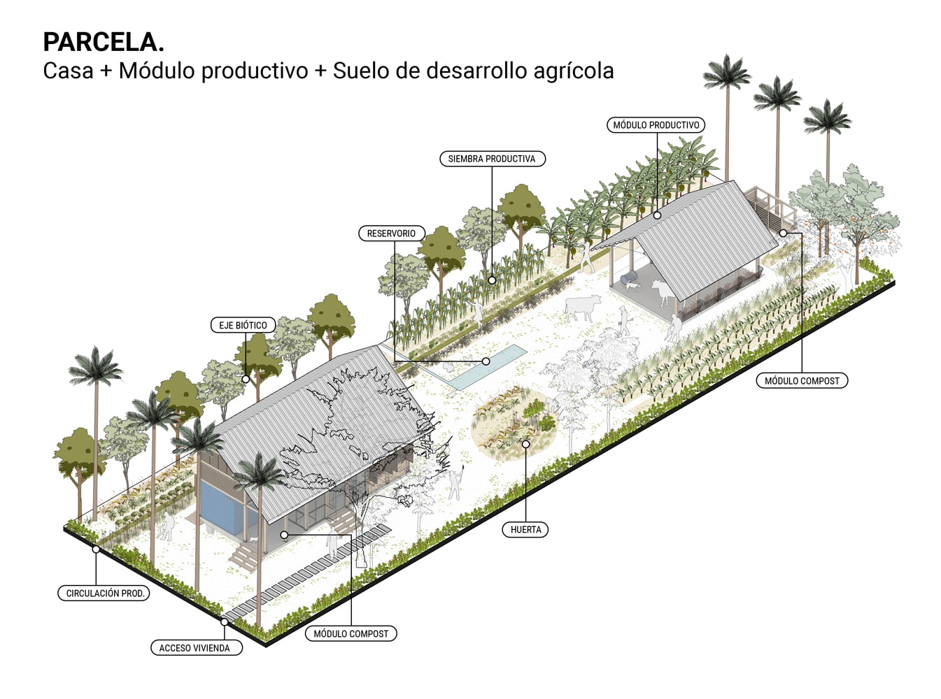 - Parcel = Unit (house + productive module + agricultural development land)