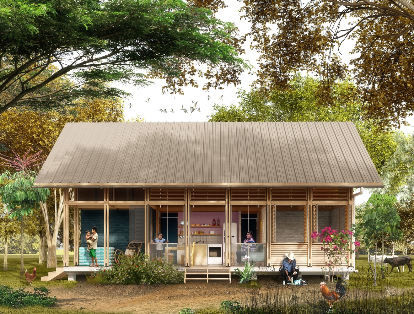 1° PUESTO (2021) Concurso Público de anteproyecto del diseño urbano, paisajismo y prototipo de vivienda social rural sostenible para el reasentamiento de familias con vocación productiva.