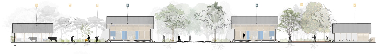 Rural housing is a system of relationships involving various activities and scales where living and working occur simultaneously, blending domestic and productive elements. It’s a HOME for living, working, sheltering, and engaging with the landscape.